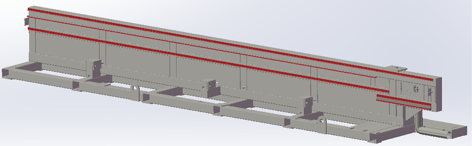采用一體式焊接床身,焊接完成后進(jìn)行退火處理,龍門(mén)加工中心一次加工完成,精度高、剛性強(qiáng)。