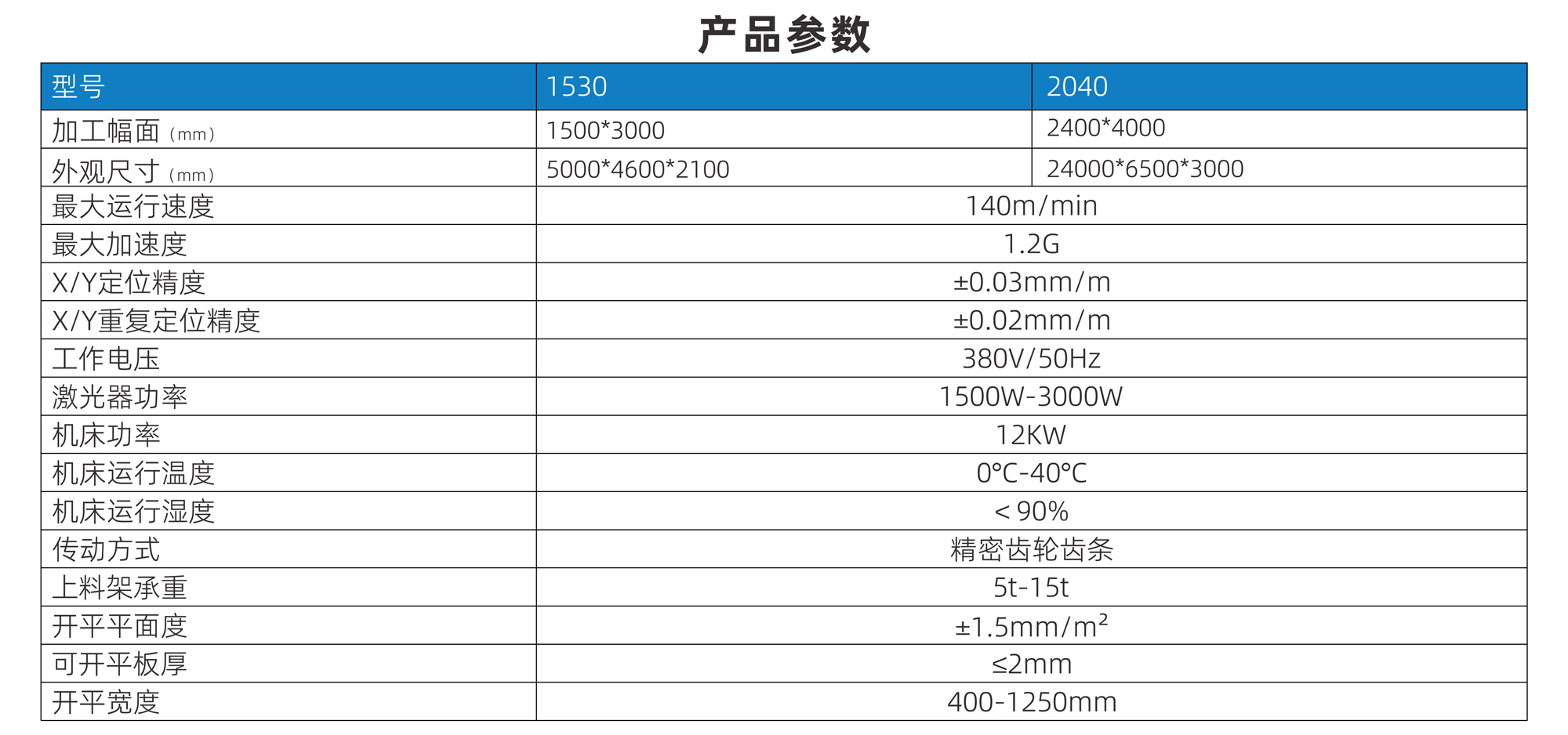 | 激光器功率 | 1500W-3000W | |